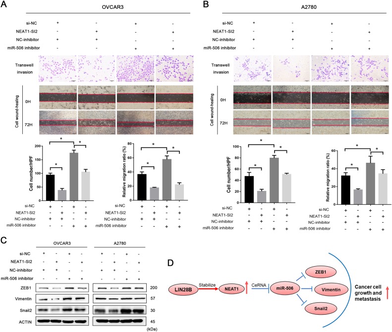 Long noncoding RNA NEAT1, regulated by LIN28B, promotes cell proliferation and migration through sponging miR-506 in high-grade serous ovarian cancer