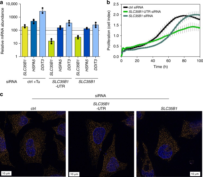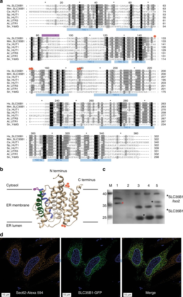 To fulfill its role in protein biogenesis, the endoplasmic reticulum (ER) depends on the Hsp70-type molecular chaperone BiP, which requires a constant ATP supply. However, the carrier that catalyzes ATP uptake into the ER was unknown. Here, we report that our screen of gene expression datasets for member(s) of the family of solute carriers that are co-expressed with BiP and are ER membrane proteins identifies SLC35B1 as a potential candidate. Heterologous expression of SLC35B1 in E. coli reveals that SLC35B1 is highly specific for ATP and ADP and acts in antiport mode. Moreover, depletion of SLC35B1 from HeLa cells reduces ER ATP levels and, as a consequence, BiP activity. Thus, human SLC35B1 may provide ATP to the ER and was named AXER (ATP/ADP exchanger in the ER membrane). Furthermore, we propose an ER to cytosol low energy response regulatory axis (termed lowER) that appears as central for maintaining ER ATP supply.