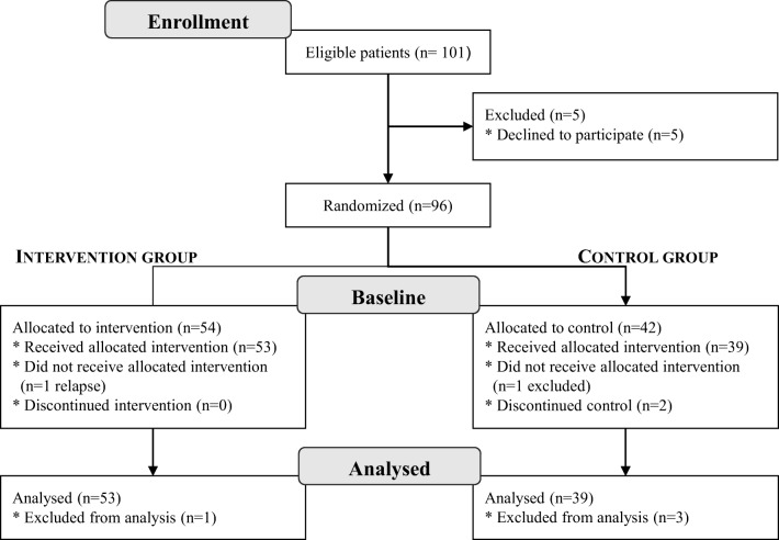Results: Characteristics were similar between 53 patients in the intervention group and 39 control patients. The average total cost was Euro (EUR) 55,544 (95% confidence interval: EUR 48,474-62,614) in the intervention group and EUR 57,443 (EUR 48,607-66,279) among controls, with similar health-related quality of life.