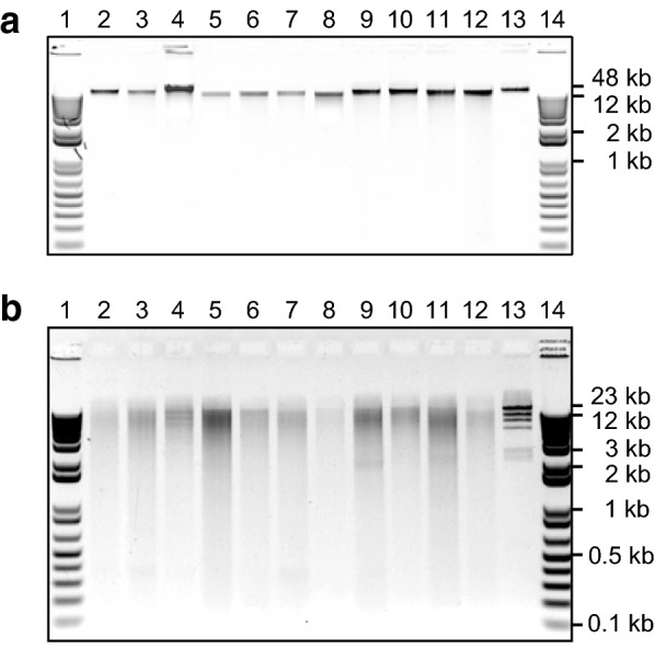 Conclusions: This versatile, scalable and simple protocol yields high molecular weight genomic DNA suitable for restriction enzyme digestion and next-generation sequencing applications including GBS and long-read sequencing platforms such as PacBio. The low cost, high-throughput, and extraction of high quality gDNA from a range of fresh and dried source plant material makes this method suitable for many sequencing and genotyping applications including large-scale sample screening underpinning breeding programmes.