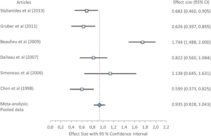 Results: Eighteen studies for quality analysis and 9 of these for meta-analysis were identified from 971 records. Risk-of-bias assessment identified 6 high, 10 moderate and 2 low risk-of-bias studies. The posturography methodological quality checklist identified 4 low, 7 moderate and 7 high-quality studies. Meta-analysis was performed for sway area whereas ML and AP are presented in three different meta-analyses due to divergent measurement units used in the studies: ML position 1 (MLP1), ML position 2 (MLP2) and ML range (MLR); AP position 1 (APP1), AP position 2 (APP2) and AP range (APR). Cohen's d showed a medium ES difference in sway area 0.65, 95% CI (0.49-0.63), whereas ML showed no (MLP1, MLP2) and large (MLR) ES differences; MLP1 0.15, 95% CI (0.08-0.22); MLP2 0.14, 95% CI (0.08-0.19); and MLR 0.94, 95% CI (0.83-1.04). Cohen's d for AP showed small ES (APP1) and large ES difference (APP2 and APR); APP1 0.43, 95% CI (0.31-0.54); APP2 0.85, 95% CI (0.72-0.97); and APR 0.98, 95% CI (0.87-1.09). Cochran's Q and Higgins I2 showed homogeneity between studies.