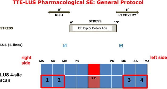 Background: The effectiveness trial "Stress echo (SE) 2020" evaluates novel applications of SE in and beyond coronary artery disease. The core protocol also includes 4-site simplified scan of B-lines by lung ultrasound, useful to assess pulmonary congestion.