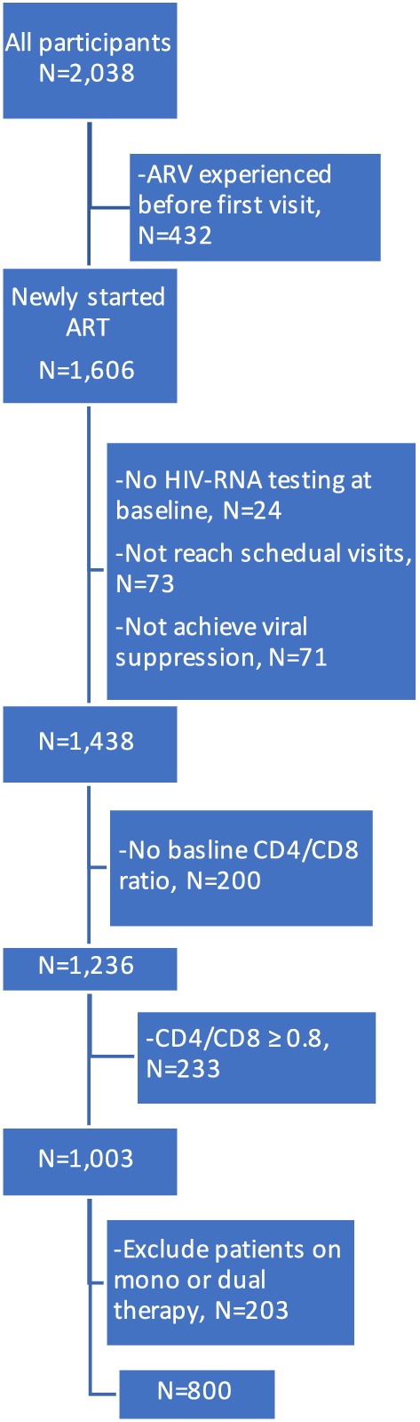 Conclusions: Our findings showed that complete immune recovery is uncommon in an Asian setting and earlier ART initiation at higher CD4 counts may have increased the ratio sooner. The findings demonstrate the use of CD4/CD8 ratio as a prognostic marker for clinical progression of NAEs. Trial registration HIV-NAT 006 cohort, clinical trial number: NCT00411983.
