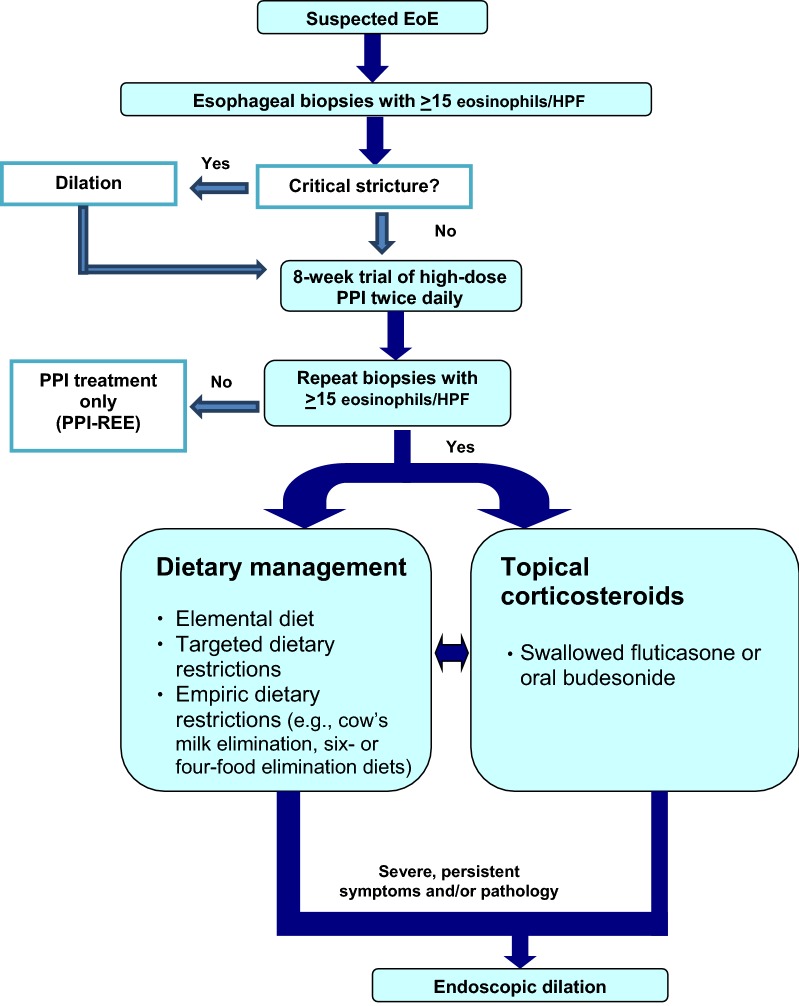 - Dellon ES, Gonsalves N, Hirano I, Furuta GT, Liacouras CA, Katzka DA, American College of Gastroenterology ACG clinical guideline: evidenced based approach to the diagnosis and management of esophageal eosinophilia and eosinophilic esophagitis (EoE) Am J Gastroenterol. 2013;108(5):679–692. doi: 10.1038/ajg.2013.71. - DOI - PubMed