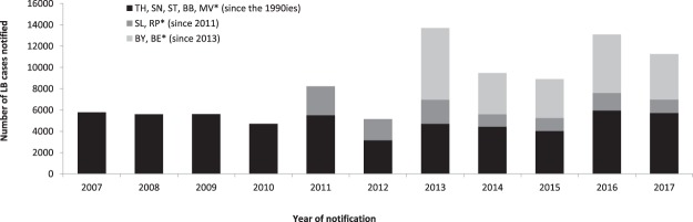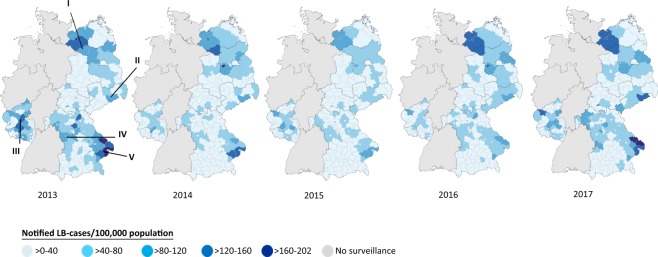 Incidence of notified Lyme borreliosis in Germany, 2013-2017