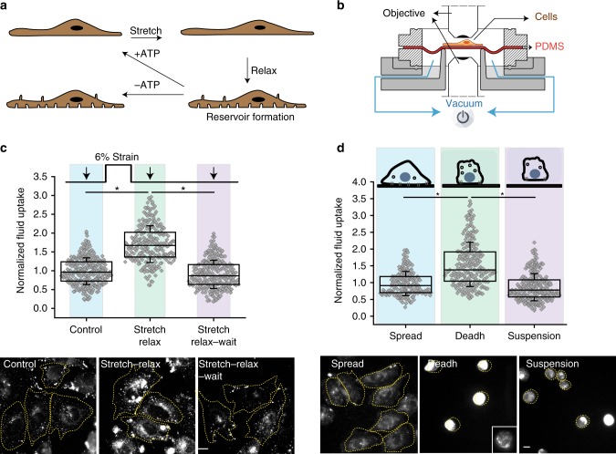 Plasma membrane tension regulates many key cellular processes. It is modulated by, and can modulate, membrane trafficking. However, the cellular pathway(s) involved in this interplay is poorly understood. Here we find that, among a number of endocytic processes operating simultaneously at the cell surface, a dynamin independent pathway, the CLIC/GEEC (CG) pathway, is rapidly and specifically upregulated upon a sudden reduction of tension. Moreover, inhibition (activation) of the CG pathway results in lower (higher) membrane tension. However, alteration in membrane tension does not directly modulate CG endocytosis. This requires vinculin, a mechano-transducer recruited to focal adhesion in adherent cells. Vinculin acts by controlling the levels of a key regulator of the CG pathway, GBF1, at the plasma membrane. Thus, the CG pathway directly regulates membrane tension and is in turn controlled via a mechano-chemical feedback inhibition, potentially leading to homeostatic regulation of membrane tension in adherent cells.