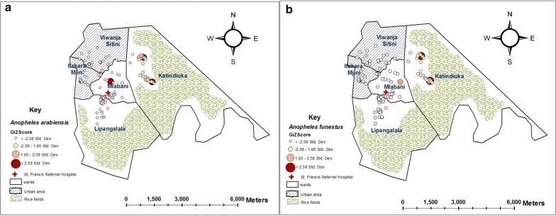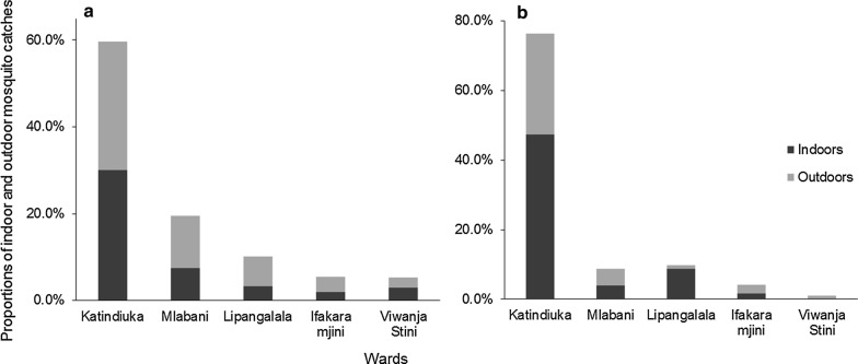 Results: After 3572 trap-nights, one Plasmodium-infected Anopheles was found (an An. funestus caught outdoors in Katindiuka-ward by HLC), resulting in overall PfEIR of 0.102 ib/p/yr. Nearly 80% of malaria vectors were from Katindiuka and Mlabani wards. Anopheles gambiae densities were higher outdoors (64%) than indoors (36%), but no such difference was observed for An. funestus. All An. funestus and 75% of An. gambiae dissected were parous. Anopheles gambiae complex consisted entirely of Anopheles arabiensis, while An. funestus included 84.2% An. funestus s.s., 4.5% Anopheles rivulorum, 1.4% Anopheles leesoni and 9.9% with unamplified-DNA. Anopheles gambiae were susceptible to bendiocarb and malathion, but resistant to pyrethroids, DDT and pirimiphos-methyl. Most houses had brick walls and/or iron roofs (> 90%), and 52% had screened windows.