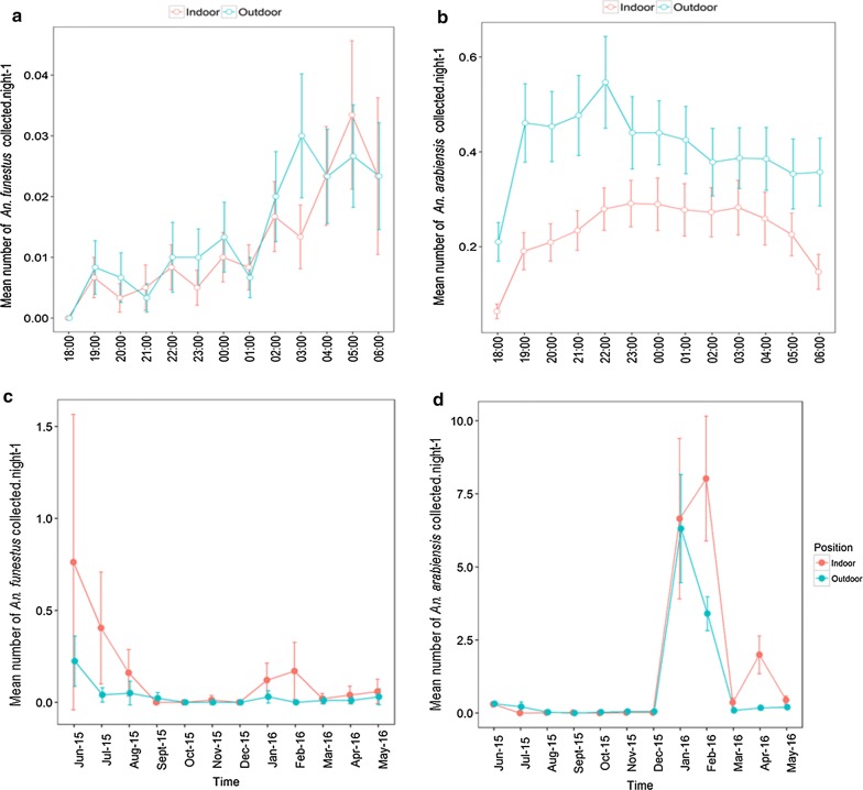 Methods: Randomly-selected 110 households were sampled across Ifakara town and four adjacent wards. Mosquitoes were trapped nightly or monthly (June.2015-May.2016) using CDC-light-traps indoors, Suna® traps outdoors and human landing catches (HLC) indoors and outdoors. All Anopheles mosquitoes were morphologically identified and analysed by ELISA for Plasmodium circumsporozoite proteins. Mosquito blood meals were identified using ELISA, and sub-samples of An. gambiae and An. funestus examined by PCR to distinguish morphologically-similar siblings. Insecticide resistance was assessed using WHO-susceptibility assays, and some Anopheles were dissected to examine ovariole tracheoles for parity.