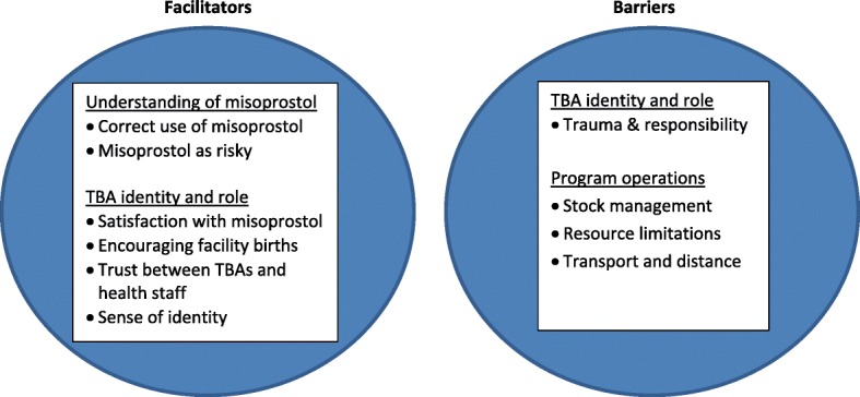 Results: The majority of TBAs in the study were satisfied with their role in the misoprostol program and were motivated to work with the formal health system to encourage women to access facility based births. Women who used misoprostol were also satisfied with the medication and encouraged family and friends to access it when needed. Women in the community and Traditional Birth Attendants requested assistance with transportation to reach the health facility to avoid home births.