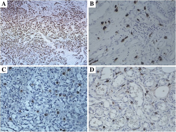 Methods: IH (n = 29), vascular malformation (VMs, n = 33) and normal skin (n = 15) specimens were assessed. IH was classified into proliferative (n = 9; age, 3.56 ± 1.01 months), early involuting (n = 10; age, 8.90 ± 2.69 months) and late involuting (n = 10; age, 20.10 ± 4.93 months) groups. Estradiol (E2), ER-a, ER-β, and tryptase (MC marker) levels were determined immunohistochemically and/or by double immunofluorescence staining. Quantification and localization of tryptase, ER-a, and E2 were assessed for each specimen.