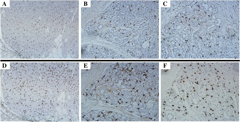 Results: ER-a, E2, and tryptase were expressed in the cytoplasm and nucleus of MCs in IH. The IH specimens showed significantly more tryptase, ER-a, and E2 positive MCs (30.6 ± 12.7, 9.7 ± 5.6, and 19.8 ± 8.7 cells/high-power field [HPF], respectively) compared with VM specimens (9.0 ± 9.8, 1.5 ± 2.4, and 2.5 ± 4.1 cells/HPF, respectively) and normal skin (6.1 ± 8.5, 0.5 ± 1.2, and 1.9 ± 3.4 cells/HPF, respectively). Proliferating IH displayed fewer E2 positive MCs (14.0 6.3 cells/HPF) compared with early (22.3 ± 10.2 cells/HPF, P = 0.023) and late (22.4 ± 6.8 cells/HPF, P = 0.006) involuting specimens. In addition, proliferating IH showed fewer tryptase positive MCs (24.7 ± 10.8 cells/HPF) compared with early involuting specimens (35.7 ± 15.3 cells/HPF, P = 0.043). All IH specimens were ER-a positive and ER-β negative.
