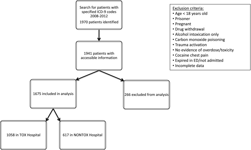 Methods: This was a retrospective study where length of stay (LOS) and payments received between a hospital with an inpatient medical toxicology service (TOX) and a similar hospital in close geographic proximity that does not have an inpatient toxicology service (NONTOX) were compared. Controlling for zip code, demographics and distance patients lived from each hospital, we used a fitted multivariate linear regression model to identify factors associated with changes in LOS and payment.