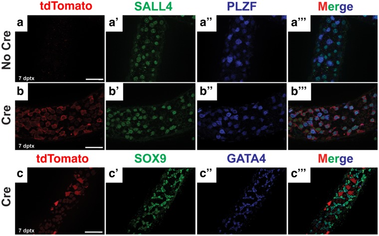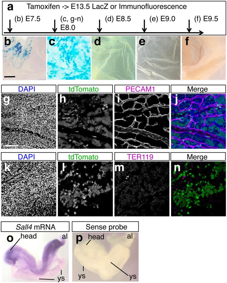 Temporal changes of Sall4 lineage contribution in developing embryos and the contribution of Sall4-lineages to postnatal germ cells in mice