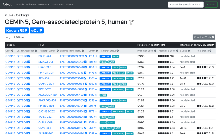 RNAct: Protein-RNA interaction predictions for model organisms with supporting experimental data