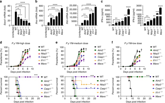 Inflammasome activation negatively regulates MyD88-IRF7 type I IFN signaling and anti-malaria immunity