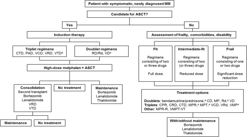 - Moreau P, San Miguel J, Sonneveld P, Mateos MV, Zamagni E, Avet-Loiseau H, Hajek R, Dimopoulos MA, Ludwig H, Einsele H, Zweegman S, Facon T, Cavo M, Terpos E, Goldschmidt H, Attal M, Buske C, Committee EG. Multiple myeloma: ESMO clinical practice guidelines for diagnosis, treatment and follow-up. Ann Oncol. 2017;28:iv52–iv61. doi: 10.1093/annonc/mdx096. - DOI - PubMed