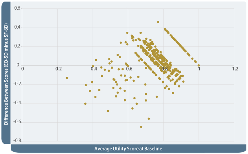 Background: Utility preference scores are standardized, generic, health-related quality of life (HRQOL) measures that quantify disease severity and burden and summarize morbidity on a scale from 0 (death) to 1 (optimal health). Utility scores are widely used to measure HRQOL and in cost-effectiveness research.