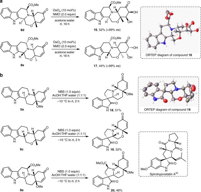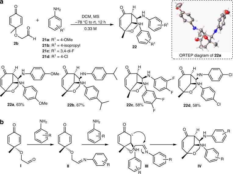 Octahydroindolo[2,3-a]quinolizine ring system forms the basic framework comprised of more than 2000 distinct family members of natural products. Despite the potential applications of this privileged substructure in drug discovery, efficient, atom-economic and modular strategies for its assembly, is underdeveloped. Here we show a one-step build/couple/pair strategy that uniquely allows access to diverse octahydroindolo[2,3-a]quinolizine scaffolds with more than three contiguous chiral centers and broad distribution of molecular shapes via desymmetrization of the oxidative-dearomatization products of phenols. The cascade demonstrates excellent diastereoselectivity, and the enantioselectivity exceeded 99% when amino acids are used as chiral reagents. Furthermore, two diastereoselective reactions for the synthesis of oxocanes and piperazinones, is reported. Phenotypic screening of the octahydroindolo[2,3-a]quinolizine library identifies small molecule probes that selectively suppress mitochondrial membrane potential, ATP contents and elevate the ROS contents in hepatoma cells (Hepa1-6) without altering the immunological activation or reprogramming of T- and B-cells, a promising approach to cancer therapy.