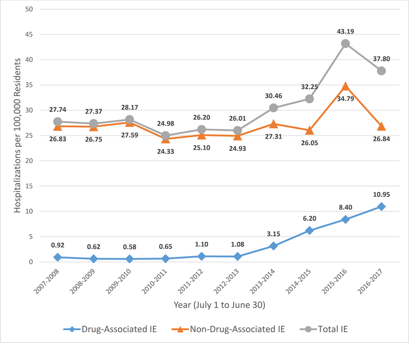 Trends in Drug Use-Associated Infective Endocarditis and Heart Valve Surgery, 2007 to 2017: A Study of Statewide Discharge Data