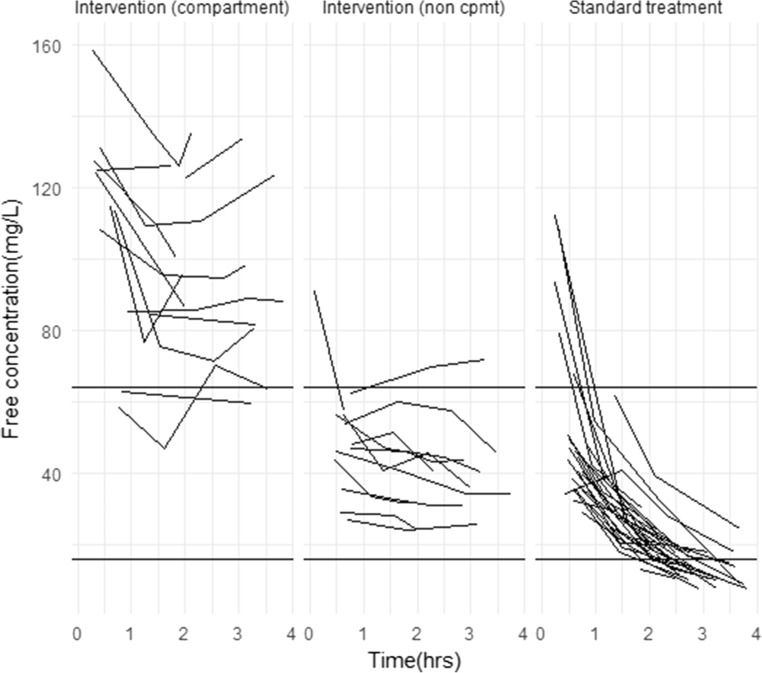 Standard bolus-dosed antibiotic prophylaxis may not inhibit growth of antibiotic resistant colonic bacteria, a cause of SSIs after colorectal surgery. An alternative strategy is continuous administration of antibiotic throughout surgery, maintaining concentrations of antibiotics that inhibit growth of resistant bacteria. This study is a pilot comparing bolus-continuous infusion with bolus-dosed cefuroxime prophylaxis in colorectal surgery. This is a pilot randomised controlled trial in which participants received cefuroxime bolus-infusion (intervention arm) targeting free serum cefuroxime concentrations of 64 mg/L, or 1.5 g cefuroxime as a bolus dose four-hourly (standard arm). Patients in both arms received metronidazole (500 mg intravenously). Eligible participants were adults undergoing colorectal surgery expected to last for over 2 h. Results were analysed on an intention-to-treat basis. The study was successfully piloted, with 46% (90/196) of eligible patients recruited and 89% (80/90) of participants completing all components of the protocol. A trialled bolus-continuous dosing regimen was successful in maintaining free serum cefuroxime concentrations of 64 mg/L. No serious adverse reactions were identified. Rates of SSIs (superficial and deep SSIs) were lower in the intervention arm than the standard treatment arm (24% (10/42) vs. 30% (13/43)), as were infection within 30 days of operation (41% (17/43) vs 51% (22/43)) and urinary tract infections (2% (1/42) vs. 9% (4/43)). These infection rates can be used to power future clinical trials. This study demonstrates the feasibility of cefuroxime bolus-continuous infusion of antibiotic prophylaxis trials, and provides safety data for infusions targeting free serum cefuroxime concentrations of 64 mg/L. Trial registration: NCT02445859 .