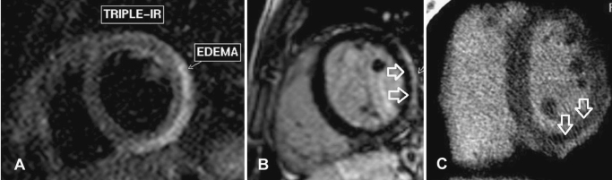 - Nieman K., Shapiro M.D., Ferencik M., Nomura C.H., Abbara S., Hoffmann U., Gold H.K., Jang I.K., Brady T.J., Cury R.C. Reperfused myocardial infarction: contrast-enhanced 64-Section CT in comparison to MR imaging. Radiology. 2008;247:49–56. - PubMed
