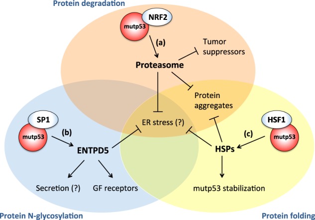 Forty years of research have established that the p53 tumor suppressor provides a major barrier to neoplastic transformation and tumor progression by its unique ability to act as an extremely sensitive collector of stress inputs, and to coordinate a complex framework of diverse effector pathways and processes that protect cellular homeostasis and genome stability. Missense mutations in the TP53 gene are extremely widespread in human cancers and give rise to mutant p53 proteins that lose tumor suppressive activities, and some of which exert trans-dominant repression over the wild-type counterpart. Cancer cells acquire selective advantages by retaining mutant forms of the protein, which radically subvert the nature of the p53 pathway by promoting invasion, metastasis and chemoresistance. In this review, we consider available evidence suggesting that mutant p53 proteins can favor cancer cell survival and tumor progression by acting as homeostatic factors that sense and protect cancer cells from transformation-related stress stimuli, including DNA lesions, oxidative and proteotoxic stress, metabolic inbalance, interaction with the tumor microenvironment, and the immune system. These activities of mutant p53 may explain cancer cell addiction to this particular oncogene, and their study may disclose tumor vulnerabilities and synthetic lethalities that could be exploited for hitting tumors bearing missense TP53 mutations.