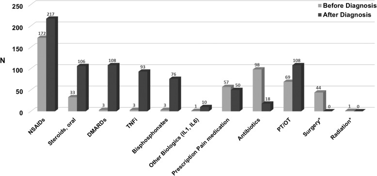 Results: There was a total of 284 survey participants. The median age at CNO diagnosis was 10 years (range 2-22+). Median time from first CNO symptom to diagnosis was 2 years. Antibiotics were used in 35% of patients prior to CNO diagnosis; of these, 24% received antibiotics for greater than 6 months. Between 25 and 61% reported a negative effect of CNO on relationships, school/work performance, or finances; and 19-50% reported effects on psychosocial well-being. The majority agreed patients' performance with daily tasks and hobbies was challenged by pain, fatigue and physical limitation related to CNO.