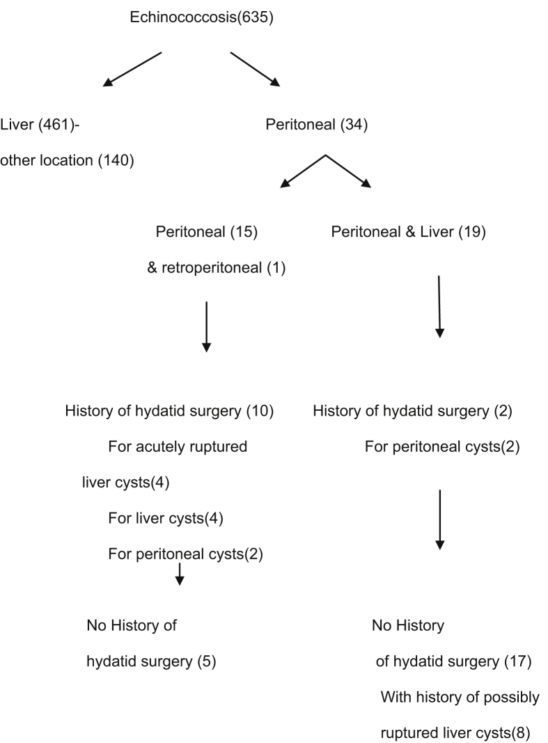Background: Hydatid disease is a global problem. We report our experience with such cases where the dominant cysts were located outside the liver and lungs. In particular, these cysts were found in the peritoneum which is an uncommon location.