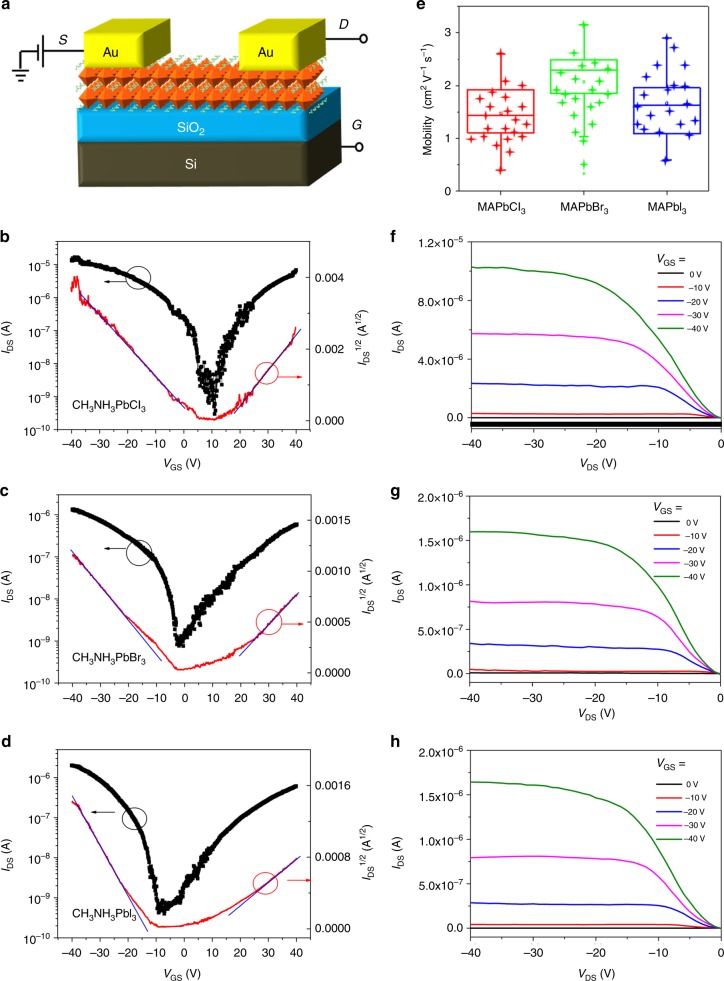 Single crystal hybrid perovskite field-effect transistors