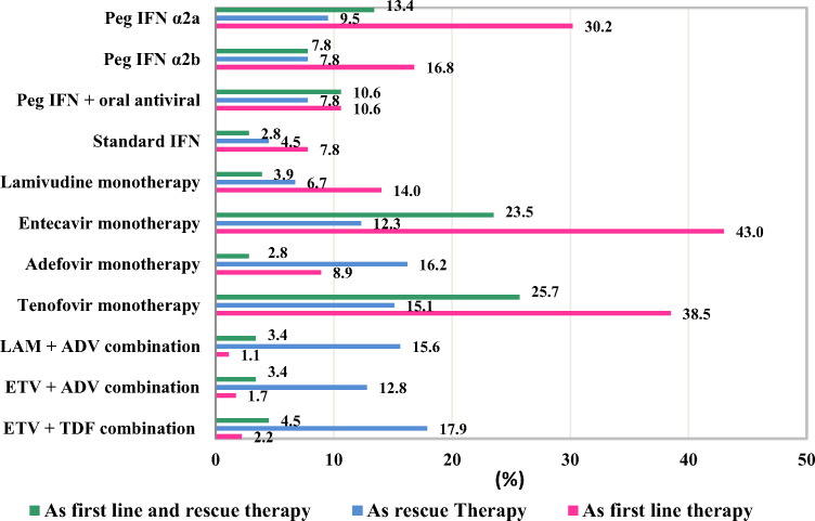 Results: A total of 179 physicians (103 residents, 76 consultants) participated. Mean age of participant was 35 ± 9.3 years. Approximately one-third of them followed AASLD (27.3%) and EASL (24.0%) guidelines. Entecavir, tenofovir or Peg IFN ∞ 2a were considered as first line therapy by 43%, 38.5% and 30.2% respectively. However, 17.9% preferred entecavir with tenofovir for rescue therapy, 25.7% and 23.5% preferred tenofovir or entecavir as both first line and rescue therapy respectively. Serum HBV DNA, alanine transaminase levels were used to monitor during oral antivirals therapy by 45.3%. hepatocellular carcinoma screening was considered for all HBV cases by 51.4% using ultrasound (55.3%) and alfa fetoprotein (52.5%) every 6 months.Overall 40.2% participants had poor knowledge about indication of liver biopsy, treatment initiation and antiviral prophylaxis. Significant association was found between grades of knowledge and gender, age group, designation and specialty (P < 0.05). Younger physicians, consultants (age 25-40 years) and those who were practicing gastroenterology/hepatology were more likely to have higher knowledge scores in compliance with the guidelines as compared to others.