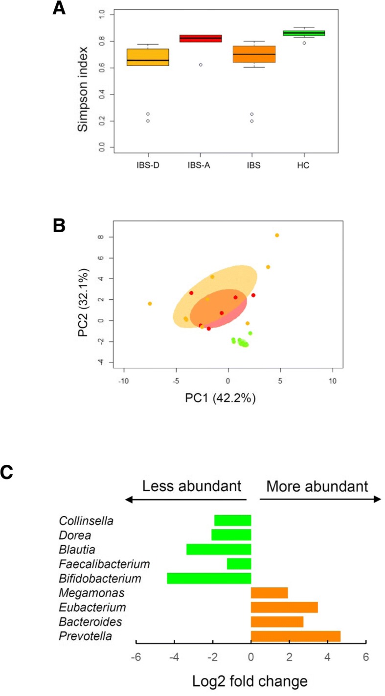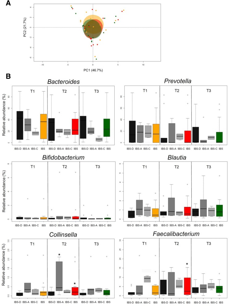 Results: The results show that orally administered Ge-OH is a powerful modulator of the intestinal microbial ecosystem, capable of leading to increased relative abundances of Collinsella and especially Faecalibacterium, a well-known health-promoting butyrate producer consistently found to be decreased in IBS patients. Moreover, Ge-OH strongly improved the clinical symptoms of colitis by significantly reducing the score recorded by the VAS-IBS questionnaire. Clinical improvement was associated with a significant reduction in the circulating MIP-1β, a chemokine found to be increased in several IBS patients.