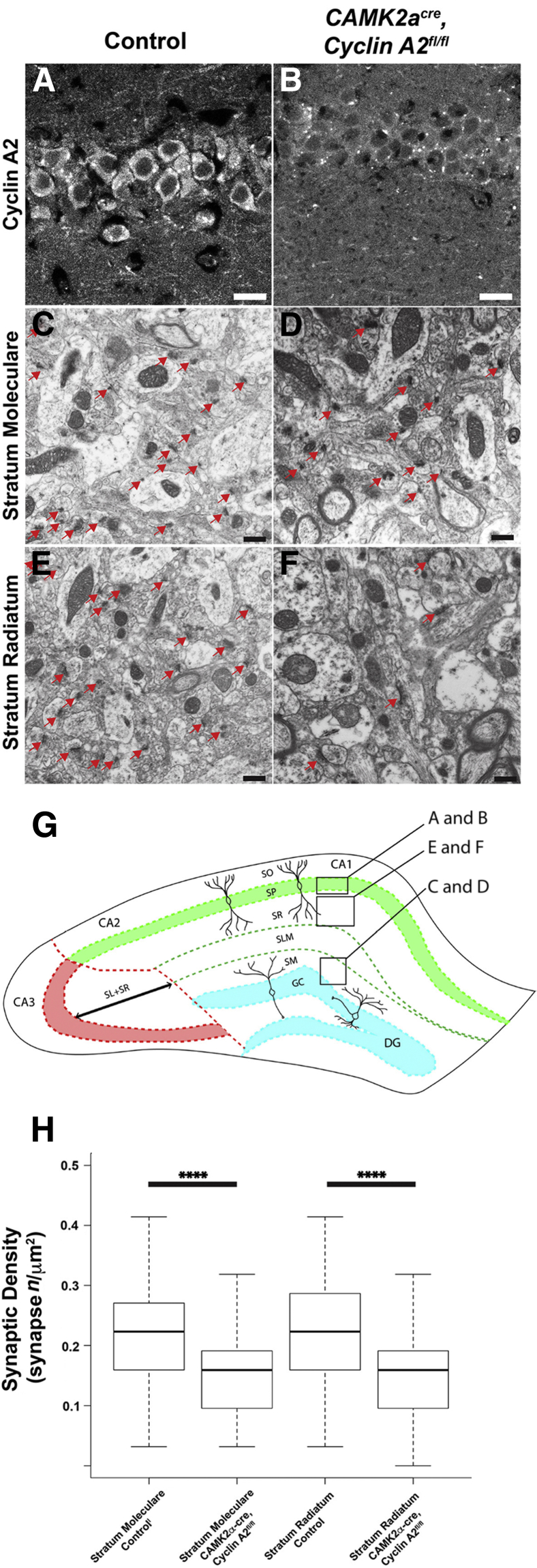 Mounting evidence in the literature suggests that RNA-RNA binding protein aggregations can disturb neuronal homeostasis and lead to symptoms associated with normal aging as well as dementia. The specific ablation of cyclin A2 in adult neurons results in neuronal polyribosome aggregations and learning and memory deficits. Detailed histologic and ultrastructural assays of aged mice revealed that post-mitotic hippocampal pyramidal neurons maintain cyclin A2 expression and that proliferative cells in the dentate subgranular zone express cyclin A2. Cyclin A2 loss early during neural development inhibited hippocampal development through canonical/cell-cycle mechanisms, including prolonged cell cycle timing in embryonic hippocampal progenitor cells. However, in mature neurons, cyclin A2 colocalized with dendritic rRNA. Cyclin A2 ablation in adult hippocampus resulted in decreased synaptic density in the hippocampus as well as in accumulation of rRNA granules in dendrite shafts. We conclude that cyclin A2 functions in a noncanonical/non-cell cycle regulatory role to maintain adult pyramidal neuron ribostasis.