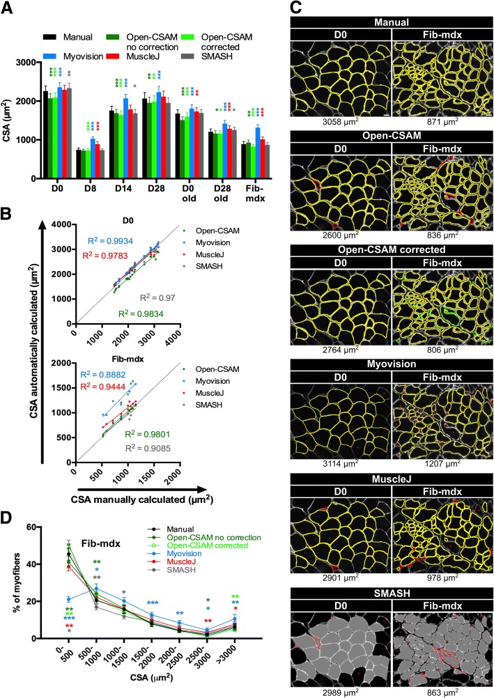 Open-CSAM, a new tool for semi-automated analysis of myofiber cross-sectional area in regenerating adult skeletal muscle