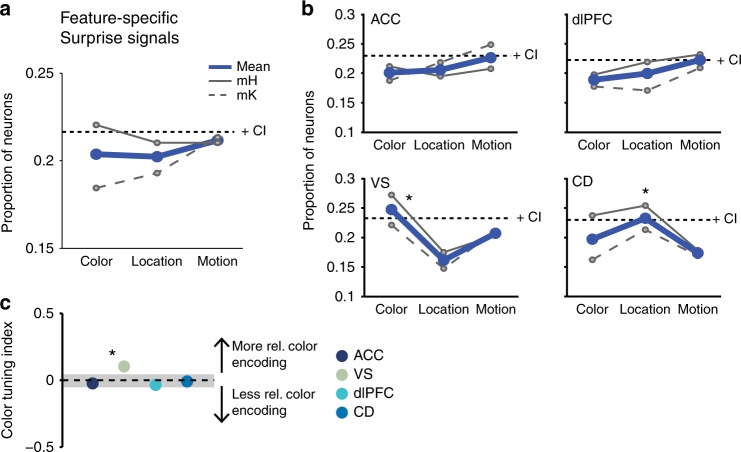 Feature-specific prediction errors and surprise across macaque fronto-striatal circuits