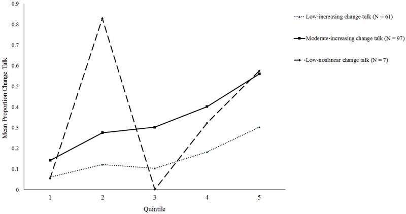 This study tested technical and relational processes hypothesized to explain the therapeutic benefit of an efficacious brief motivational interview (BMI). A randomized controlled trial compared the efficacy of a BMI to an attention-matched control (i.e., relaxation training [REL]) for reducing heavy alcohol consumption and associated negative consequences. Participants were underage, past-month heavy drinkers recruited from community settings (N = 167; ages 17-20; 62% female; 59% White). Data were collected on session recordings, using established motivational interviewing process measures. Statistical analyses followed 3 steps. First, a latent class model determined the optimal class solution for characterizing proportion change talk means within BMI and REL. Next, the probability of proportion change talk class membership was examined as a mediator and then as a moderated mediator of BMI efficacy. The latent class model yielded a 3-class solution, including a low-increasing proportion change talk class (n = 61), a moderate-increasing proportion change talk class (n = 97), and a nonlinear proportion change talk class (n = 7). Across the outcomes examined, membership in the moderate-increasing class rather than the low-increasing class mediated BMI effects on alcohol-related consequences at 6 weeks. Mediation tests for consequences at 3 months and heavy drinking were nonsignificant. Moderated mediation results for therapist empathy and MI Spirit were nonsignificant. Findings suggest that moderate increases in prochange statements, relative to anti- or neutral-change statements, help explain BMI effects on reducing alcohol-related negative consequences soon after intervention. (PsycINFO Database Record (c) 2019 APA, all rights reserved).