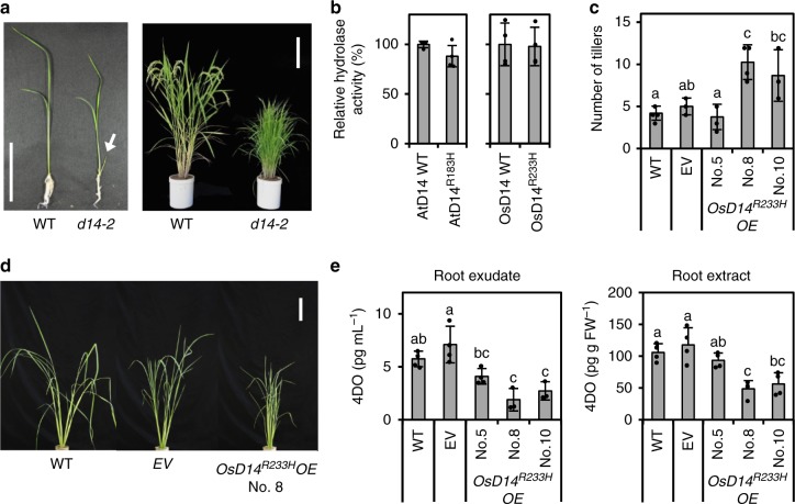 Strigolactone perception and deactivation by a hydrolase receptor DWARF14