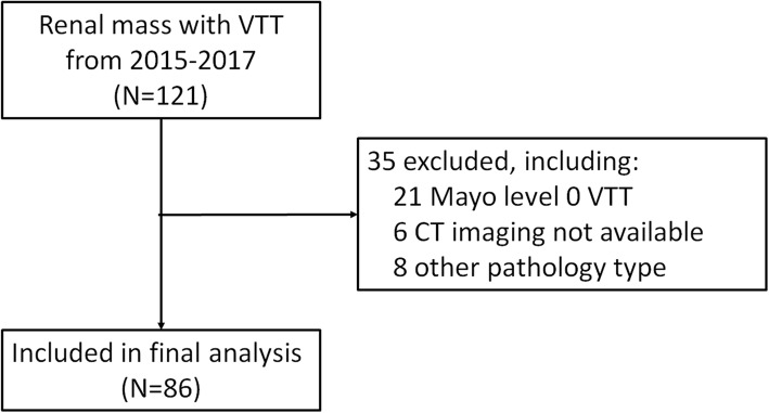 Methods: We reviewed data of 121 patients with renal cell carcinoma and venous tumor thrombus receiving radical nephrectomy and thrombectomy at our institution between 2015 and 2017, and 86 patients with Mayo I-IV level tumor thrombus were included in the final analysis. Clinical features, operation details, and pathology data were collected. Preoperative images were reviewed separately by two radiologists. Univariable and multivariable logistic regression analyses were applied to evaluate clinical and radiographic risk factors of IVC resection.