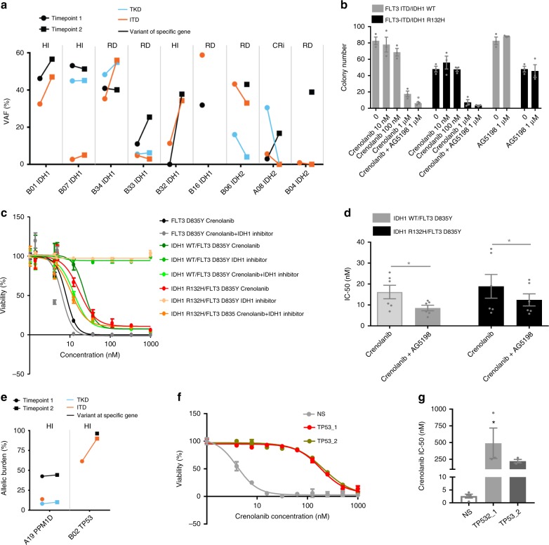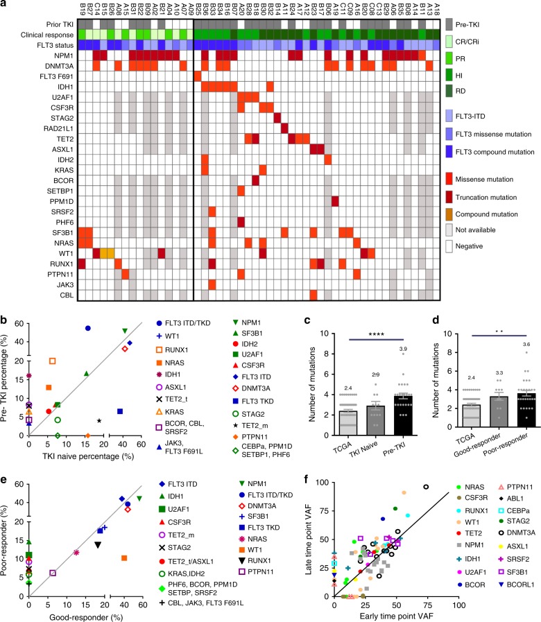 Research support for J.W.T. is received from Aptose, Array, AstraZeneca, Constellation, Genentech, Gilead, Incyte, Janssen, Seattle Genetics, Syros, Takeda; co-founder of Vivid Biosciences. B.J.D. potential competing interests-- Scientific Advisory Board: Aileron Therapeutics, ALLCRON, Cepheid, Gilead Sciences, Vivid Biosciences, Celgene & Baxalta (inactive); SAB & Stock: Aptose Biosciences, Blueprint Medicines, Beta Cat, GRAIL, Third Coast Therapeutics, CTI BioPharma (inactive); Scientific Founder & Stock: MolecularMD; Board of Directors & Stock: Amgen; Board of Directors: Burroughs Wellcome Fund, CureOne; Joint Steering Committee: Beat AML LLS; Clinical Trial Funding: Novartis, Bristol-Myers Squibb, Pfizer; Royalties from Patent 6958335 (Novartis exclusive license) and OHSU and Dana-Farber Cancer Institute (one Merck exclusive license) H.H., Y.L.L., R.S., C.F. and V.J. are employees of AROG Pharmaceuticals. The remaining authors declare no competing interests.