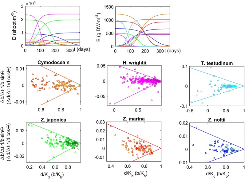 Keywords: Above-ground biomass; Cymodoceae; Halodule; Interspecific boundary line; Logistic growth; Thalassia; Zostera.