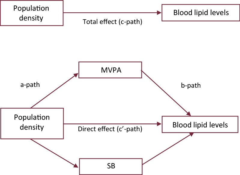 Methods: We used cross-sectional data from 2547 Dutch blood donors that participated in Donor InSight-III. Linear regression was used to analyze the association between population density and LDL cholesterol, total/HDL cholesterol ratio and HDL cholesterol. The mediating roles of moderate-to-vigorous physical activity (MVPA) and sedentary behavior were investigated in a subsample (n = 740) for which objectively measured MVPA/sedentary behavior data was available. Multiple mediation with linear regression analyses were performed and the product-of-coefficients method was used to calculate direct and indirect effects.