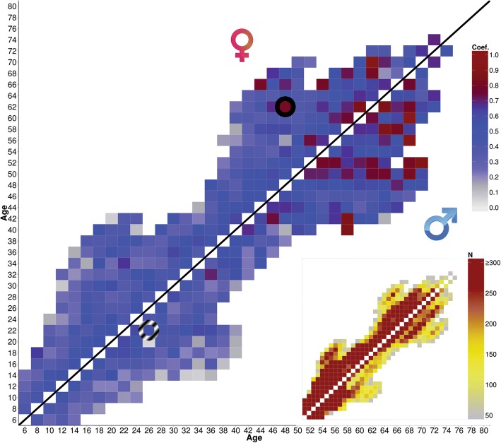 Methods: A large dataset (N = 43,889) from the Netherlands Twin Register (NTR) was used to analyse the tracking of exercise behaviour over time. Using this dataset, we were able to examine tracking as a function of baseline age (8 to 80 years) and tracking duration (2 to 22-year follow-up), taking into account sex differences, using generalized estimating equations.