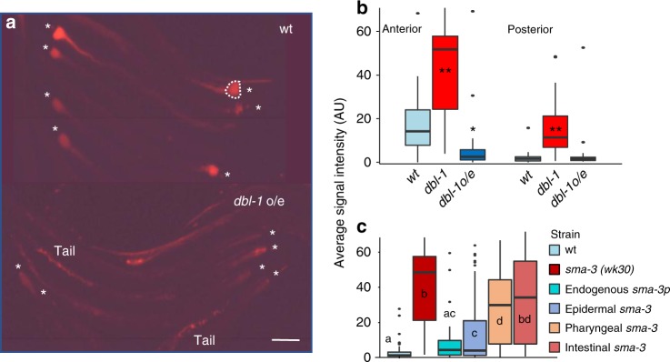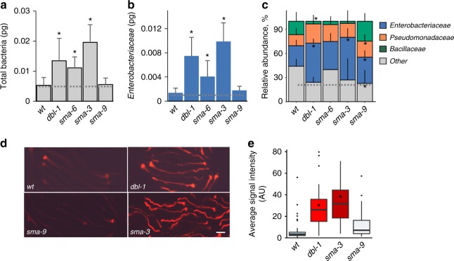 TGFβ/BMP immune signaling affects abundance and function of C. elegans gut commensals
