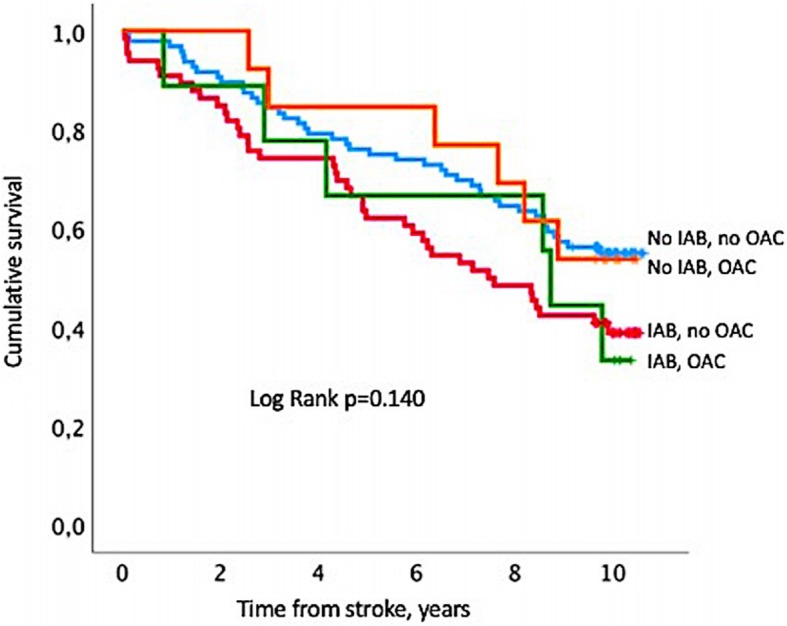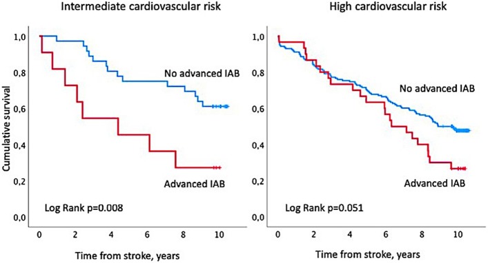 Conclusion: Advanced IAB predicted all-cause mortality after ischemic stroke, but mostly in patients without additional cardiovascular comorbidities.