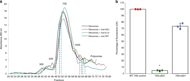 Viruses modulate ecosystems by directly altering host metabolisms through auxiliary metabolic genes. However, viral genomes are not known to encode the core components of translation machinery, such as ribosomal proteins (RPs). Here, using reference genomes and global-scale viral metagenomic datasets, we identify 14 different RPs across viral genomes arising from cultivated viral isolates and metagenome-assembled viruses. Viruses tend to encode dynamic RPs, easily exchangeable between ribosomes, suggesting these proteins can replace cellular versions in host ribosomes. Functional assays confirm that the two most common virus-encoded RPs, bS21 and bL12, are incorporated into 70S ribosomes when expressed in Escherichia coli. Ecological distribution of virus-encoded RPs suggests some level of ecosystem adaptations as aquatic viruses and viruses of animal-associated bacteria are enriched for different subsets of RPs. Finally, RP genes are under purifying selection and thus likely retained an important function after being horizontally transferred into virus genomes.