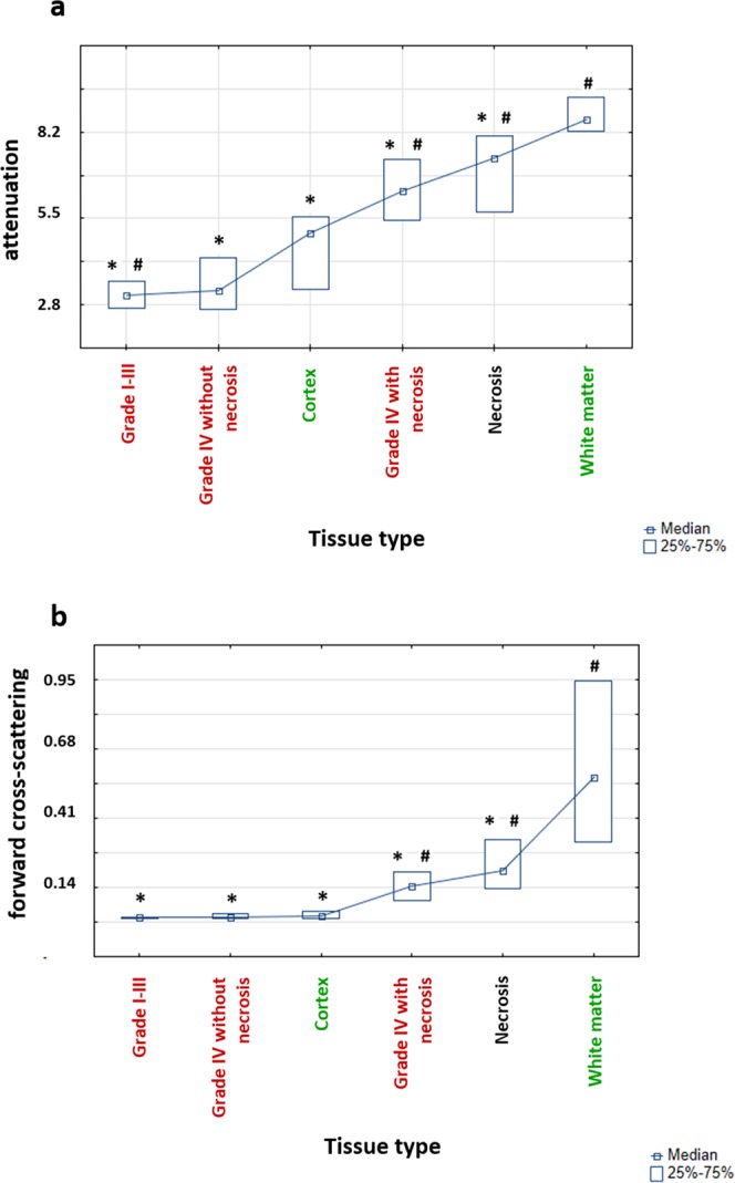 Quantitative nontumorous and tumorous human brain tissue assessment using microstructural co- and cross-polarized optical coherence tomography