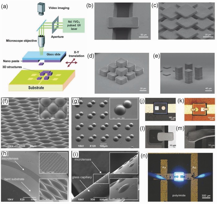 Keywords: 3D printing; additive manufacturing; direct ink writing; electrospinning; light‐emitting devices; optical sensors; waveguides.