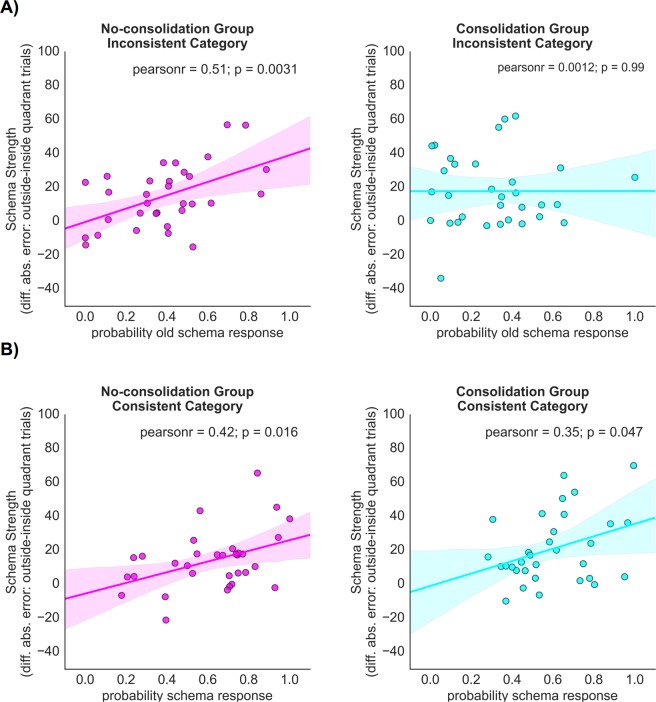 Schemas are knowledge structures that allow us to make efficient judgments about the world without the cost of memorizing every detail of previous experiences. It has long been known that schemas can enhance long-term memory for related information. The usefulness of schemas, however, critically depends on their adaptability: how flexibly a schema can be updated according to changing environmental conditions. Prior consolidation of a schema supports new learning of schema-consistent information. Yet, the effect of consolidation on inconsistent information, and how schemas may be subsequently updated, are not well understood. It is difficult to track the dynamic updating of knowledge structures with traditional memory measures. Here, using a continuous-report paradigm, we were able to show that schematization increases incrementally with consolidation and that the strength with which schemas are initially established predicts schema-guided responding in a later test. Critically, schema updating in response to inconsistent information was more pronounced in a group which was given time to consolidate compared to a group that was not given time to consolidate. Importantly, the later group reverted back to the no longer relevant schema, indicating that systematic bias towards old information, rather than increased forgetting, underlies reduced memory for schema-inconsistent information.