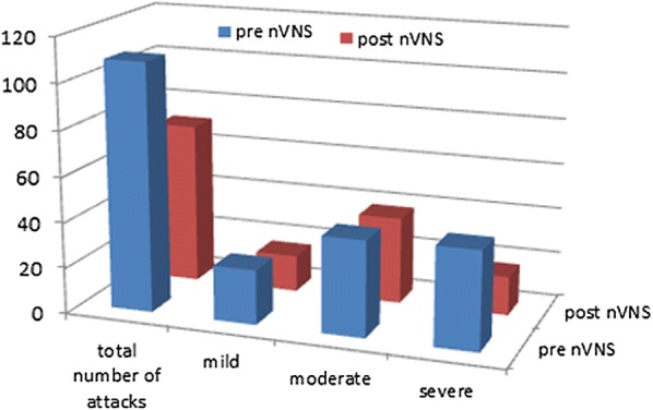 Results: nVNS significantly reduced headache severity (VAS), frequency (headache days and total number of attacks) and significantly improved sleep quality compared to baseline (p < 0.01). Inter-ictal saliva oxytocin and IL-1β were significantly elevated pre- as well as post-nVNS compared to healthy controls (p < 0.01) and similarly showed changes that may reflect the observed clinical effects.