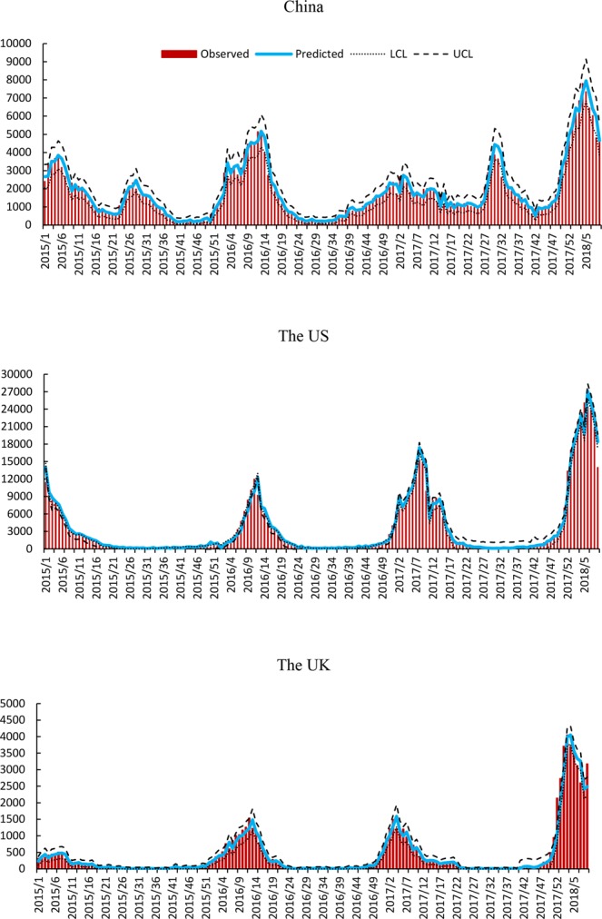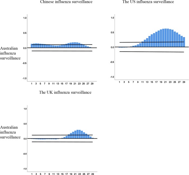 Can early warning systems be developed to predict influenza epidemics? Using Australian influenza surveillance and local internet search query data, this study investigated whether seasonal influenza epidemics in China, the US and the UK can be predicted using empirical time series analysis. Weekly national number of respiratory cases positive for influenza virus infection that were reported to the FluNet surveillance system in Australia, China, the US and the UK were obtained from World Health Organization FluNet surveillance between week 1, 2010, and week 9, 2018. We collected combined search query data for the US and the UK from Google Trends, and for China from Baidu Index. A multivariate seasonal autoregressive integrated moving average model was developed to track influenza epidemics using Australian influenza and local search data. Parameter estimates for this model were generally consistent with the observed values. The inclusion of search metrics improved the performance of the model with high correlation coefficients (China = 0.96, the US = 0.97, the UK = 0.96, p < 0.01) and low Maximum Absolute Percent Error (MAPE) values (China = 16.76, the US = 96.97, the UK = 125.42). This study demonstrates the feasibility of combining (Australia) influenza and local search query data to predict influenza epidemics a different (northern hemisphere) scales.