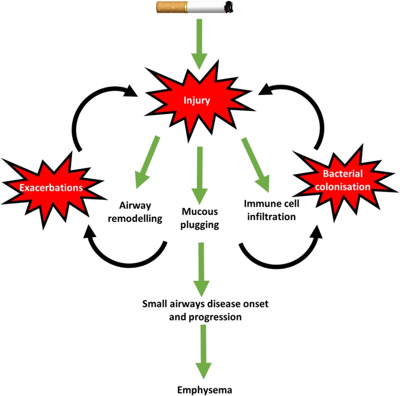 Keywords: Bacteria; COPD; Emphysema; Exacerbations; Histopathology; Inflammation; Remodeling; Small airways disease.